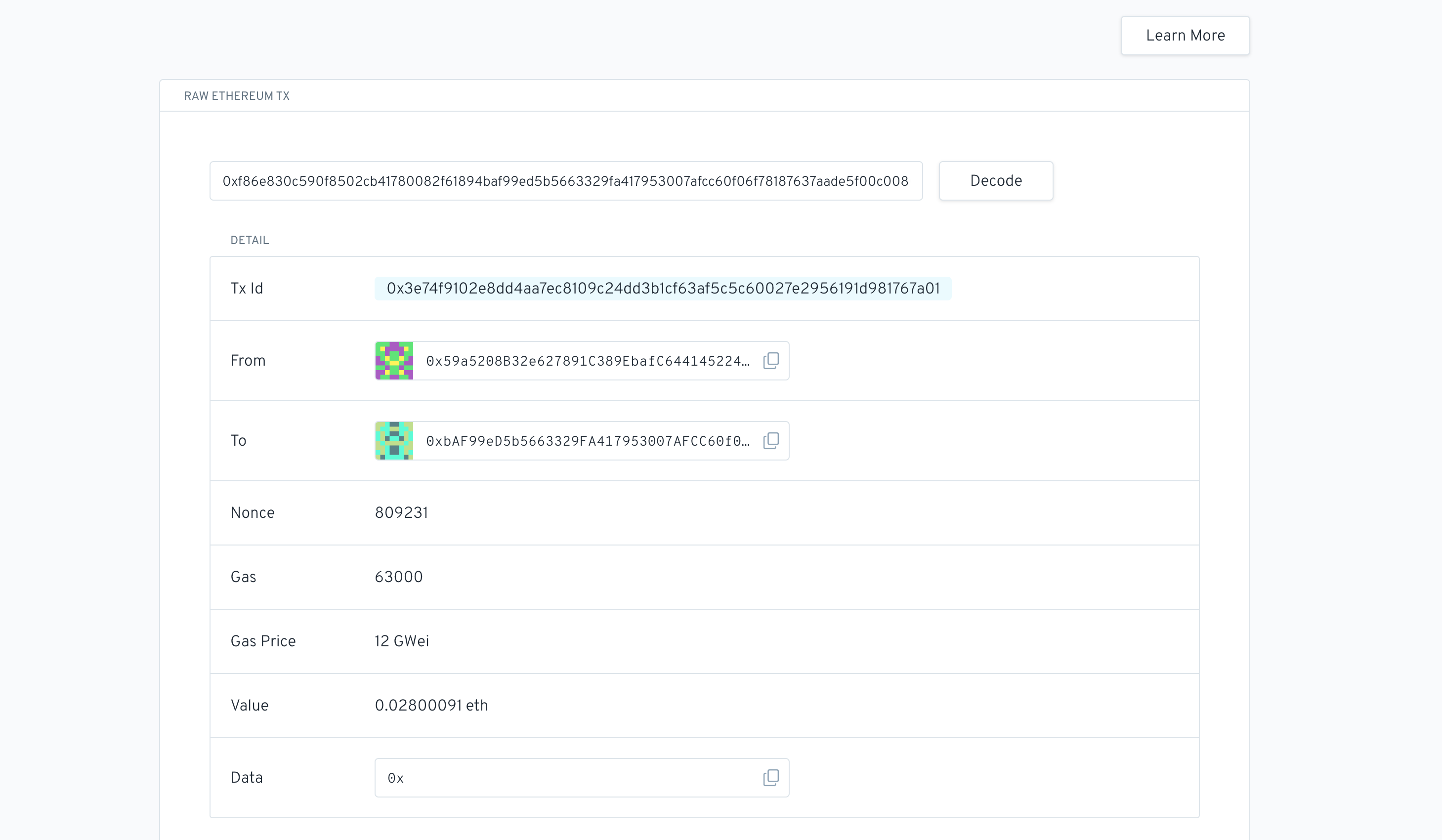 This is a simple tool for Ethereum raw transaction decoding. Now hosting on GitHub Page.